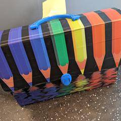 In de koffer bevinden zich enkele mooie materialen, die geschonken zijn door mijn herstelcoach van het Kunst waanzinnig goed tekenatelier in Deventer. Waaronder een rol Lyra potloden en bijbehorende puntenslijper, maar ook prachtige Posca stiften. En de koffer zelf natuurlijk.